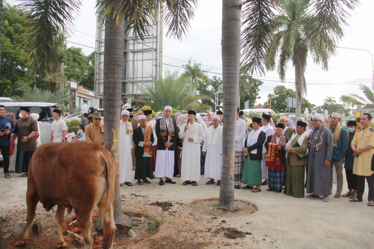 Bengkulu, Tintabangsa.com – Gubernur Bengkulu Rohidin Mersyah menyerahkan 2 ekor sapi dan juga kambing kurban ke Masjid Raya Baitul Izzah, Minggu (10/07/2022) usai melaksanakan sholat Idul Adha 1443 Hijriah Tahun 2022 didampingi Istri Derta Wahyulin Rohidin.
