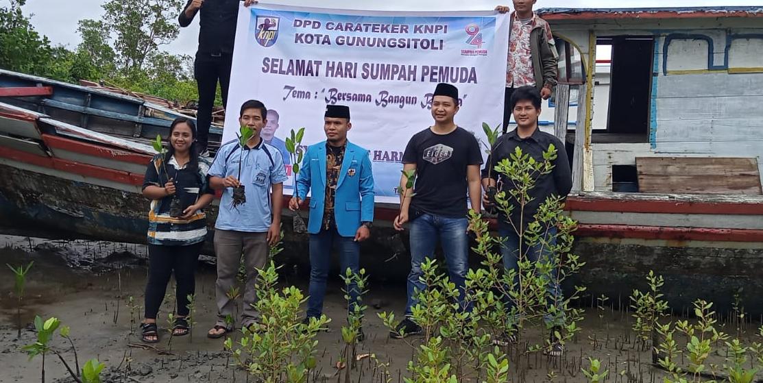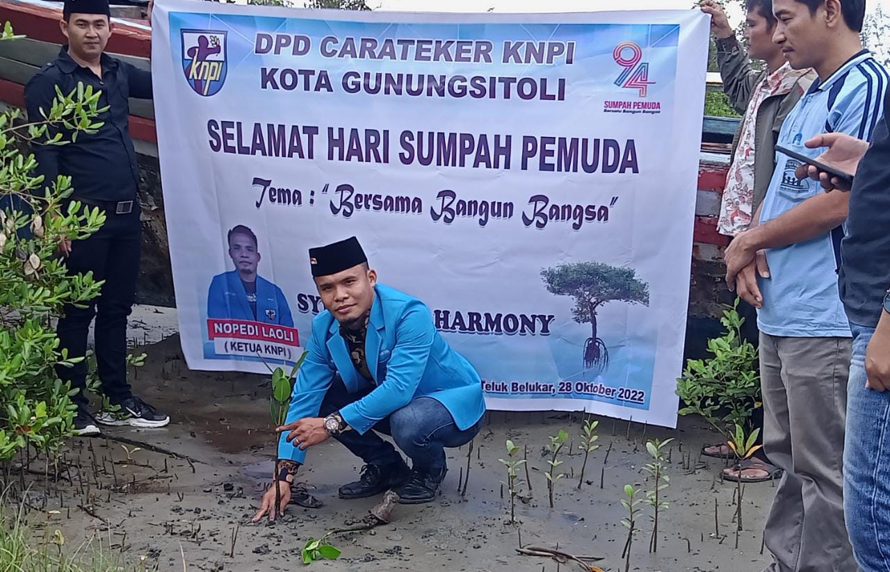 Gunungsitoli, Tintabangsa.com – Caretaker Dewan Pengurus Daerah (DPD) Komite Nasional Pemuda Indonesia (KNPI) Sinergi Of Harmoni Kota Gunungsitoli melakukan kegiatan penanaman pohon mangrove dipantai muara indah Desa Teluk Belukar, Kecamatan Gunungsitoli Utara, Kota Gunungsitoli.