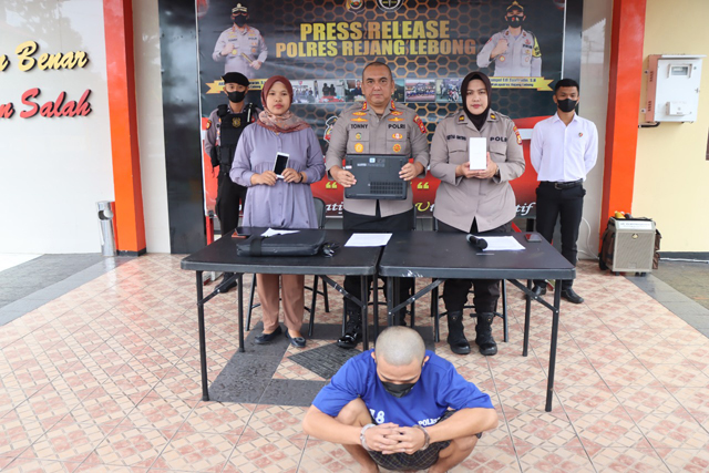 Reskrim Rejang Lebong mengamankan barang bukti berupa 1 (satu) Unit laptop merk Acer warna merah, 1 (satu) Unit HP merk Oppo Neo 7 warna putih, 1 (satu) buah kotak HP merk OPPO warna putih, 1 (satu) tas merk Acer warna hitam.