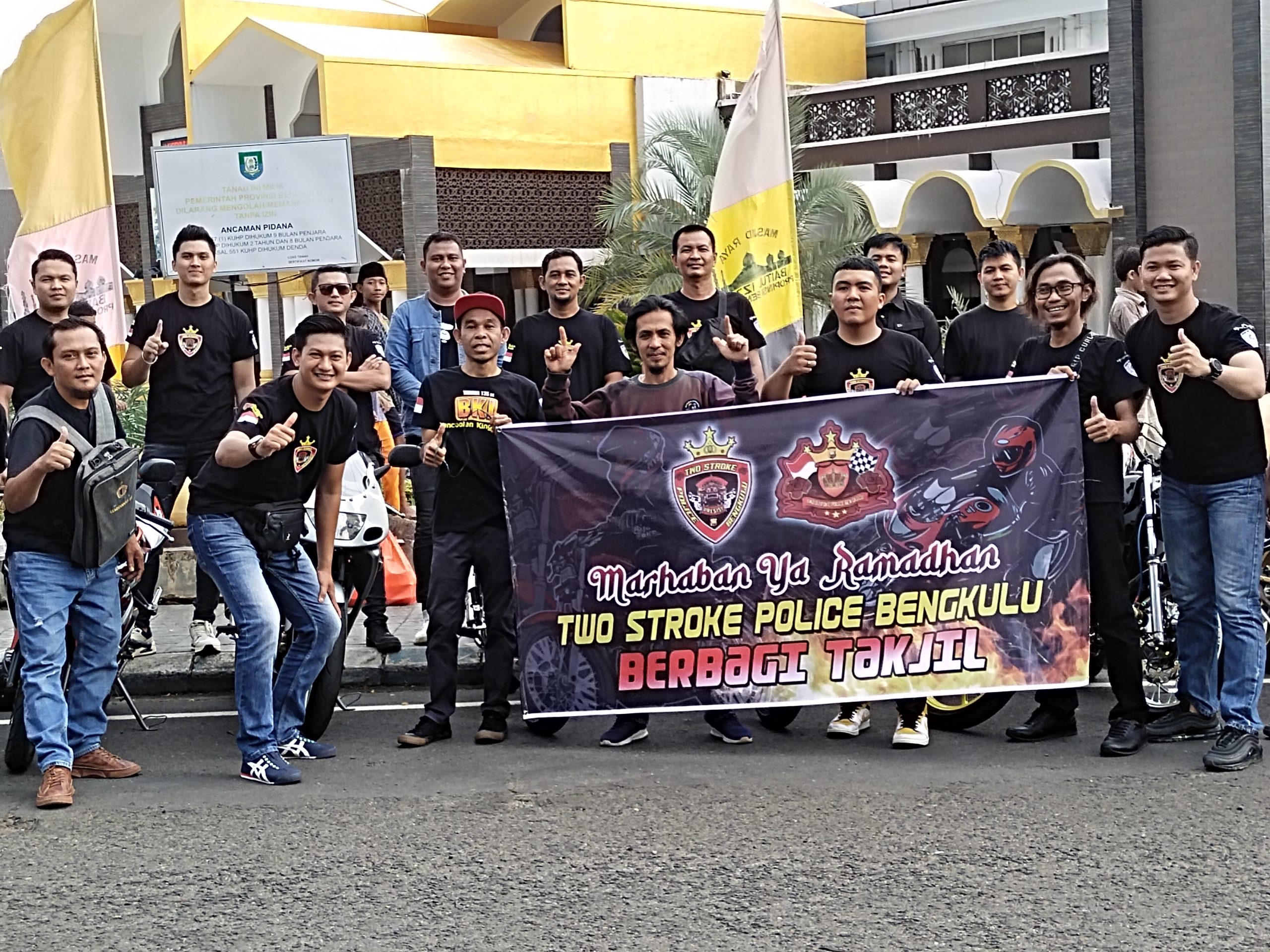 Momen bulan penuh berkah ini dimanfaatkan umat Islam untuk bersilaturahmi dan saling berbagi dengan sesama. Demikian juga, momen ini tidak dilewatkan Komunitas Motor Two Stroke Police Bengkulu menggelar aksi bagi-bagi takjil buka puasa, kegiatan dilaksanakan di Jalan Pembangungan Lampu Merah depan Masjid Raya Baitul Izza.
