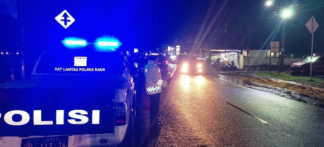 Kaur – Sat Lantas Polres Kaur Polda Bengkulu, Pada hari Kamis, (15/06/2023) Pukul 20.10 WIB s/d 20.40 WIB melaksanakan pantauan arus Lalu Lintas di jalan raya lintas Sumatera Kota Bintuhan.
