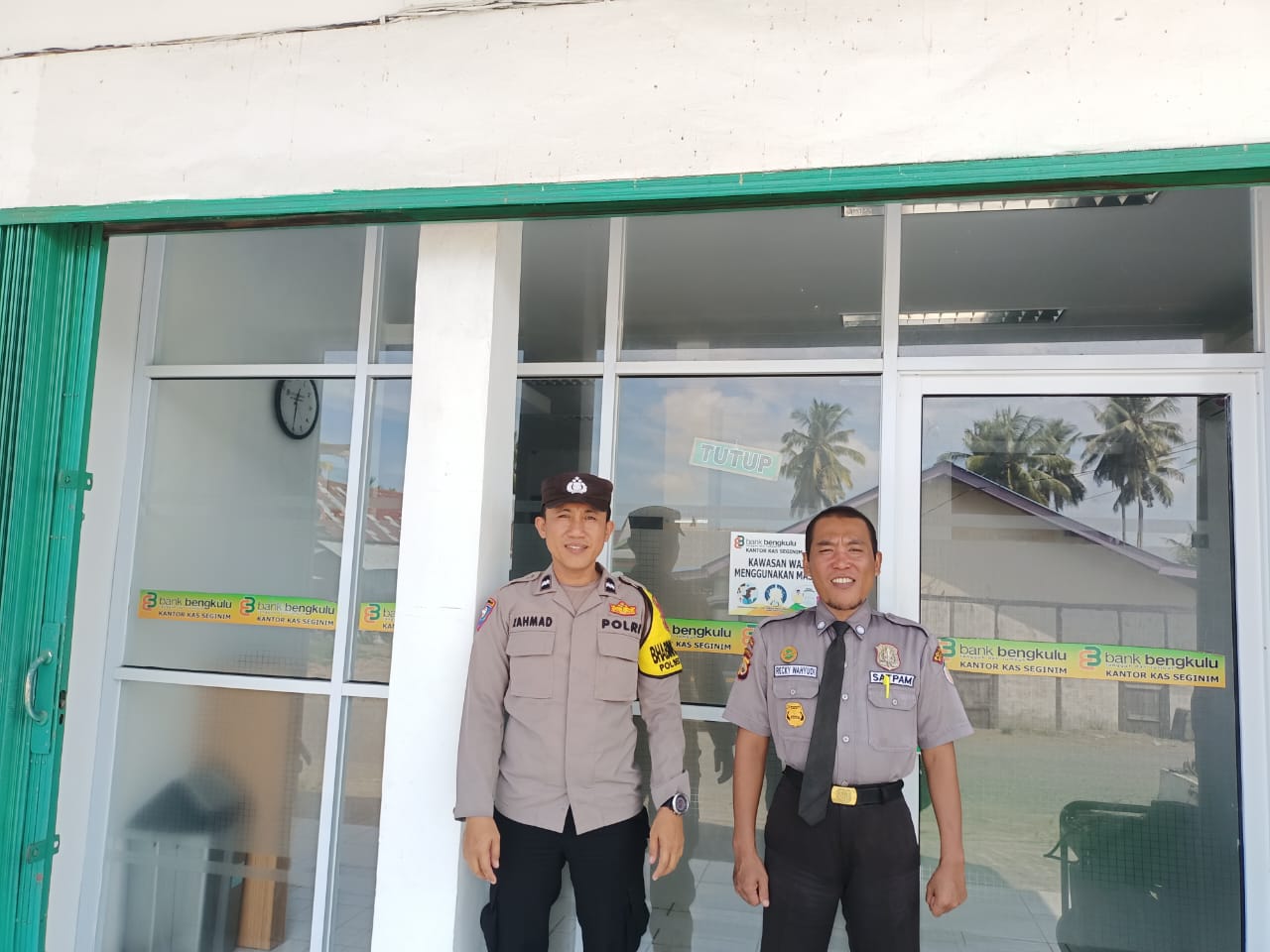 Bengkulu Selatan, – Dalam rangka  antisipasi tindak kejahatan dan kriminalitas, Bhabikamtibmas Polsek Seginim Aipda Rahmat Hidayat, S.H., melaksanakan sambang kepada security Bank Bengkulu Kelurahan Pasar Baru Kecamatan Seginim Kabupaten Bengkulu Selatan,  Selasa (19/06/23).
