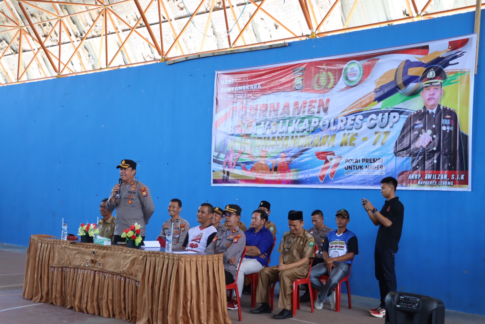 Turut hadir dalam pembukaan kegiatan, Kabag Perencanaan Kompol Rustandi Haidir, personel Satlantas Polres Lebong, pengurus PBVSI Lebong, dan peserta turnamen.
