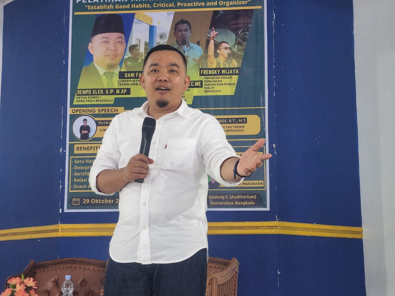 Bengkulu, Tintabangsa.com – Ketua Komisi I Dewan Perwakilan Rakyat Daerah (DPRD) Provinsi Bengkulu Dempo Xler menjadi narasumber pada kegiatan Musyawarah Rakyat (Musra) XXVI Bengkulu, di Aula Kampus Unihaz Bengkulu.