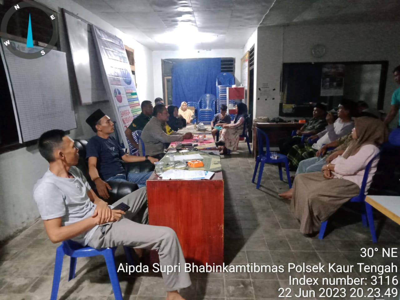 Kaur – Mendapat informasi adanya warga yang mengalami perselisihan, Pilar Desa Lubuk Gung kecamatan Semidang Gumay Kabupaten Kaur tadi malam, Kamis (22/06/2023) menggelar kegiatan mediasi melalui program problem solving kepolisian.