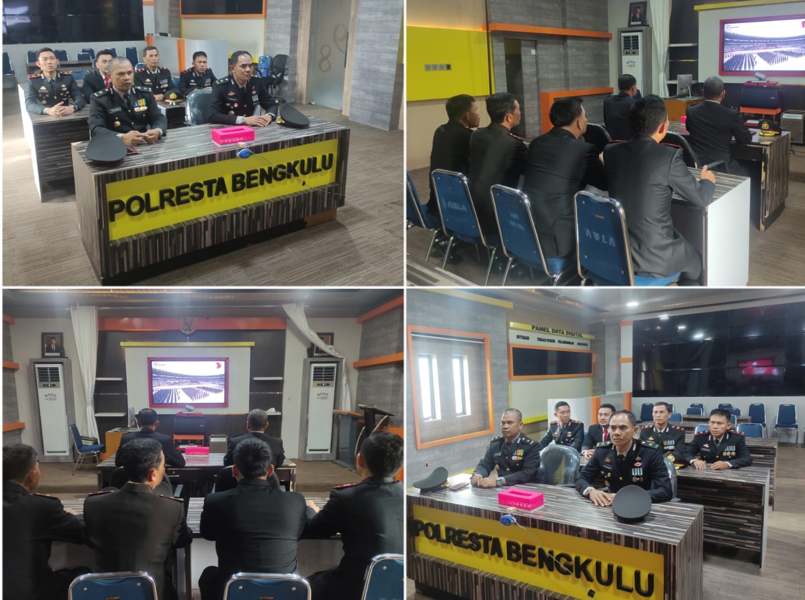 Kota Bengkulu – Polresta Bengkulu Polda Bengkulu, mengikuti upacara pembinaan tradisi peringatan Hari Bhayangkara ke-77 secara virtual/online, di Aula Endra Dharmalaksana Polresta Bengkulu, Sabtu (1/7/2023).
