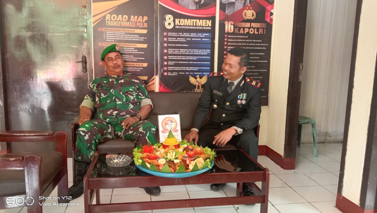 Untuk Polsek Lebong Selatan, Kapolsek Lebong Selatan Iptu Kuat Santoso menerima ucapan selamat dari personel Koramil 402/01 Lebong Selatan berupa tumpeng dari Danramil Peltu Irwansyah.