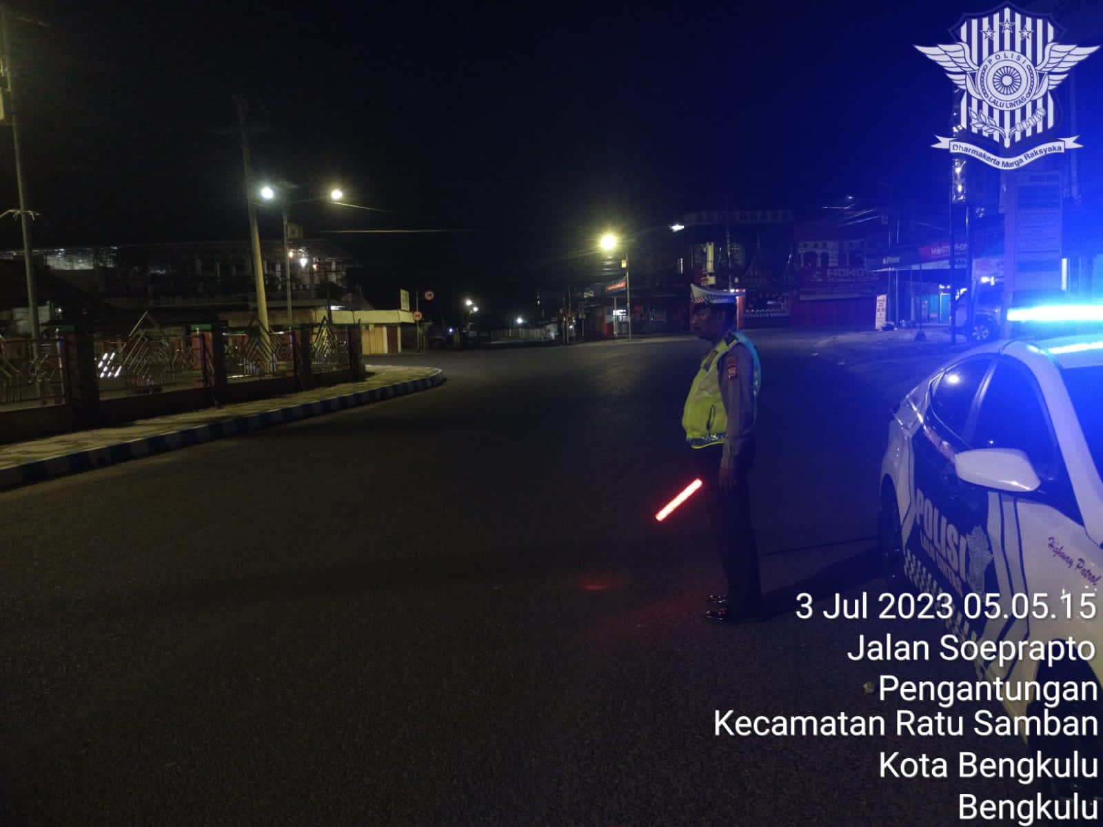 Kota Bengkulu – Satlantas Polresta Bengkulu Polda Bengkulu melaksanakan kegiatan KRYD Patroli Subuh di Masjid Jamik Bengkulu. Senin(03/07/2023).