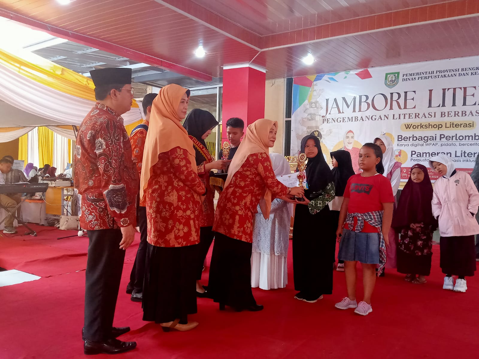 Bengkulu, Tintabangsa.com – Bunda Literasi Provinsi Bengkulu ibu Derta Rohidin yang diwakili oleh ibu Sekda Provinsi Bengkulu menghadiri Penutupan Jambore Literasi yang diadakan oleh Dinas Perpustakaan dan Kearsipan Provinsi Bengkulu yang dilaksankan mulai dari tanggal 10 hingga 12 Juli 2023. (12/07/2023).