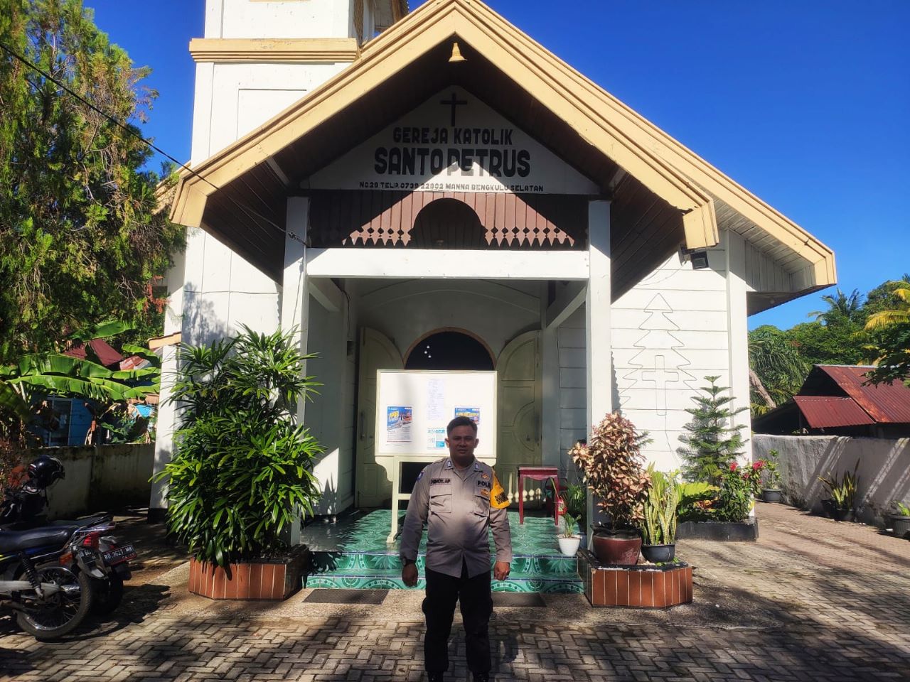 Bengkulu Selatan, – Polsek Kota Manna Polres Bengkulu Selatan Polda Bengkulu, Aipda Istin Farizon S.H., melaksanakan pengamanan di Gekesia dan Santo Petrus kota Manna jalan Letnan Tukiran Batang Bangau Manna, Minggu (16/07/2023).