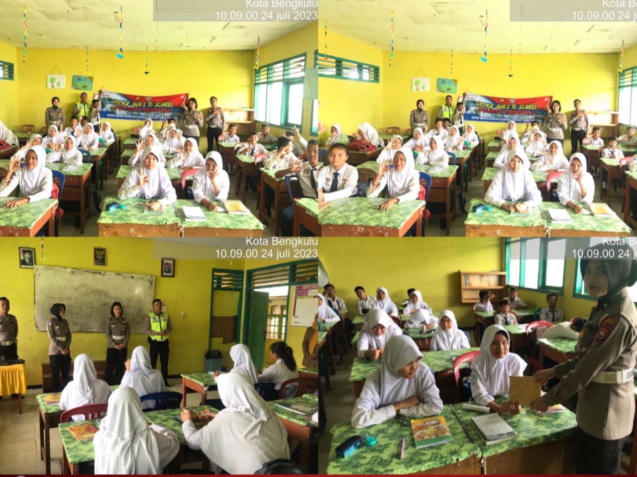 Bengkulu – Satlantas Polresta Bengkulu Polda Bengkulu, melaksanakan kegiatan Police Goes To School di SMPN 01 Kota Bengkulu, Senin (24/07/2023) pagi.