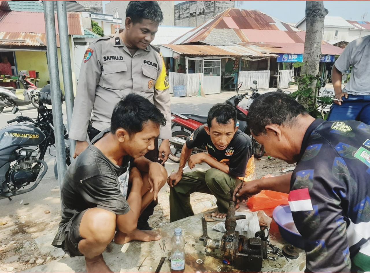 Dalam pelaksanaan kegiatan sambang tersebut, Bhabinkamtibmas Kelurahan Malabro Aipda Safrudin memberikan imbauan kamtibmas kepada masyarakat Nelayan sedang memperbaiki mesin kapalnya rusak.