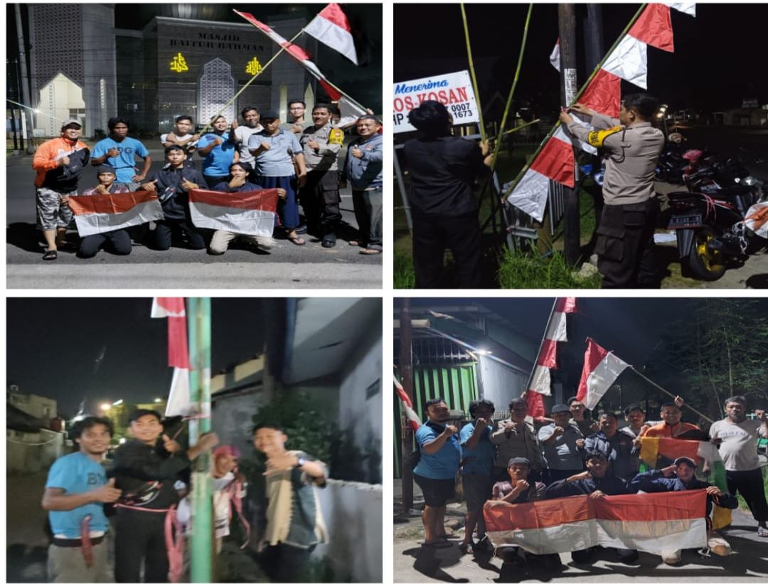 Bengkulu – Dalam rangka menyambut HUT Kemerdekaan RI Ke 78, Bhabinkamtibmas Kelurahan Timur Indah Polsek Gading Cemapaka Polda Bengkulu Aiptu Budi Rahayu bersama warga melaksankan pemasangan Bendera Maerah Putih di sepanjang Jalan Salak Raya dan Jlan Timur Indah, Senin (31/07/2023) malam.