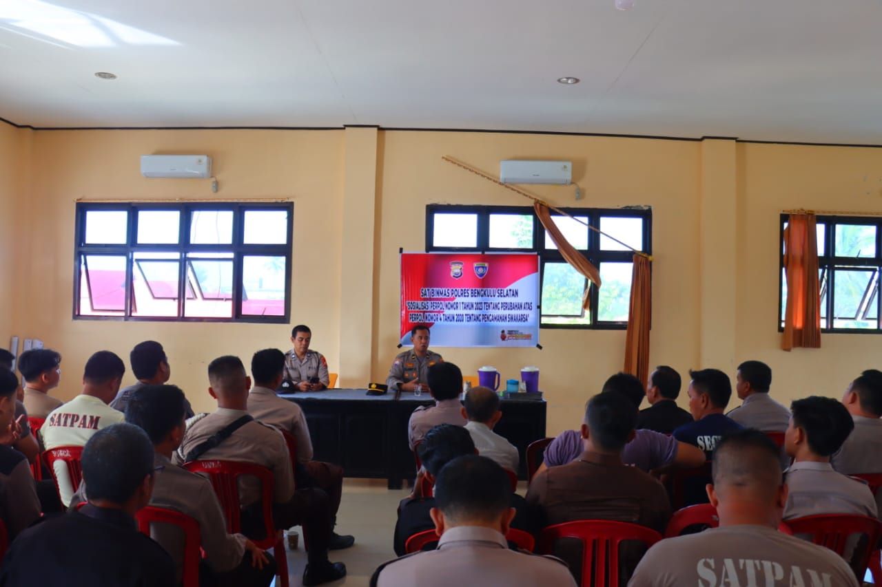 Bengkulu Selatan – Sat Binmas Polres Bengkulu Selatan yang dipimpin langsung Kasat Binmas Iptu Kudyadi S.H., M.Si melaksanakan kegiatan Pembinaan Satpam di Polres Bengkulu Selatan, Kamis (03/08/2023).