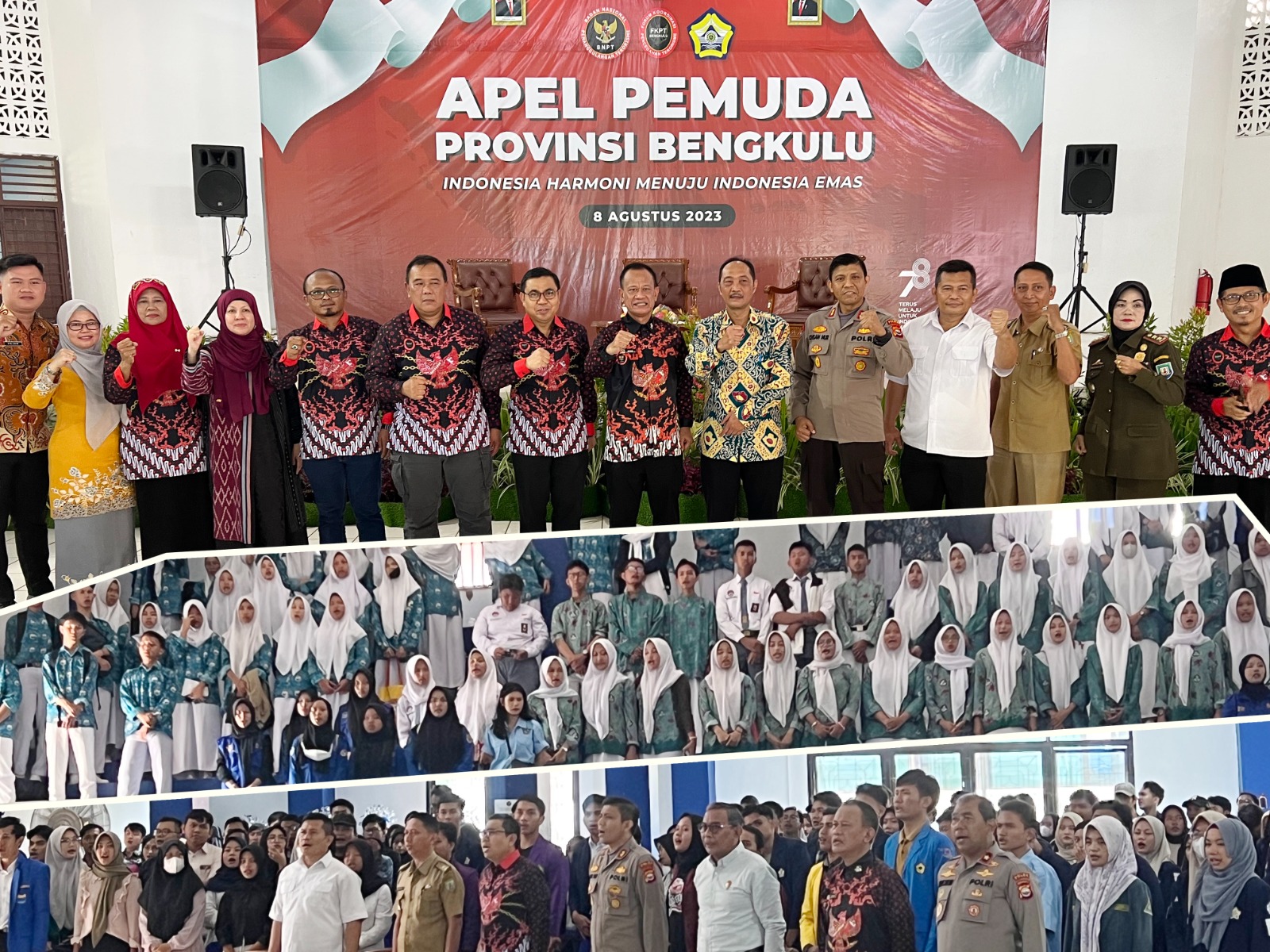 Bengkulu – Badan Nasional Penanggulangan Terorisme (BNPT) dan Forum Koordinasi Pencegahan Terorisme (FKPT) Bengkulu menggelar Apel Pemuda Bengkulu di Auditorium Universitas Bengkulu (Unib), Selasa (8/8/2023).
