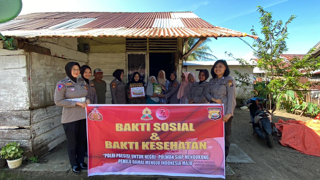 Polwan Cantik Polres Mukomuko Gelar Aksi Bagi Sembako dan Pelayanan Kesehatan Kepada Lansia
