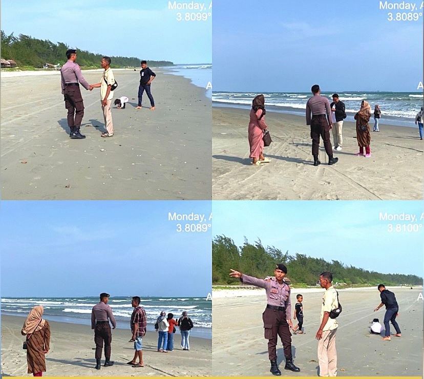 Patroli di Kawasan Pantai Panjang, Polsi Ingatkan Warga Untuk Tidak Mandi di Pantai Panjang