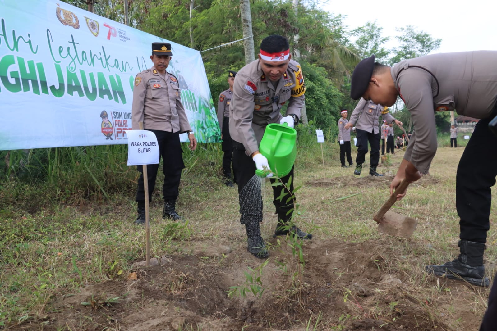 Aksi nyata penghijauan oleh Polres Blitar itu diawali dengan penanaman bibit pohon kayu putih secara simbolik oleh Wakil Kepala Polres Blitar Kompol Roycke H.F. Betaubun S.I.P. S.I.K M.Si dan segenap jajaran Pejabat Utama (PJU) Polres Blitar, Jum’at (18/8/2023).