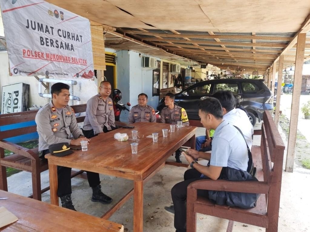 Mukomuko – Kapolsek Mukomuko Selatan Iptu M.Setya Yuli Muhanto, S.H., melaksanakan kegiatan Jumat Curhat bersama warga masyarakat Ipuh, Jumat (18/08/2023).