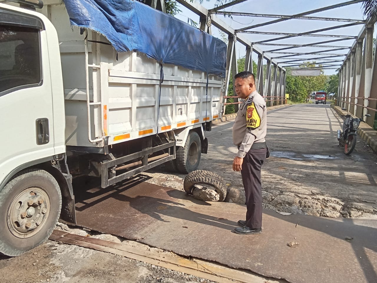 Bengkulu Utara – Pak Babin Polsek BatiknauPolres Bengkulu Utara Polda Bengkulu, cek kondisi jembatan serta memberikan imbauan untuk berhati-hati, Minggu (20/08/2023).