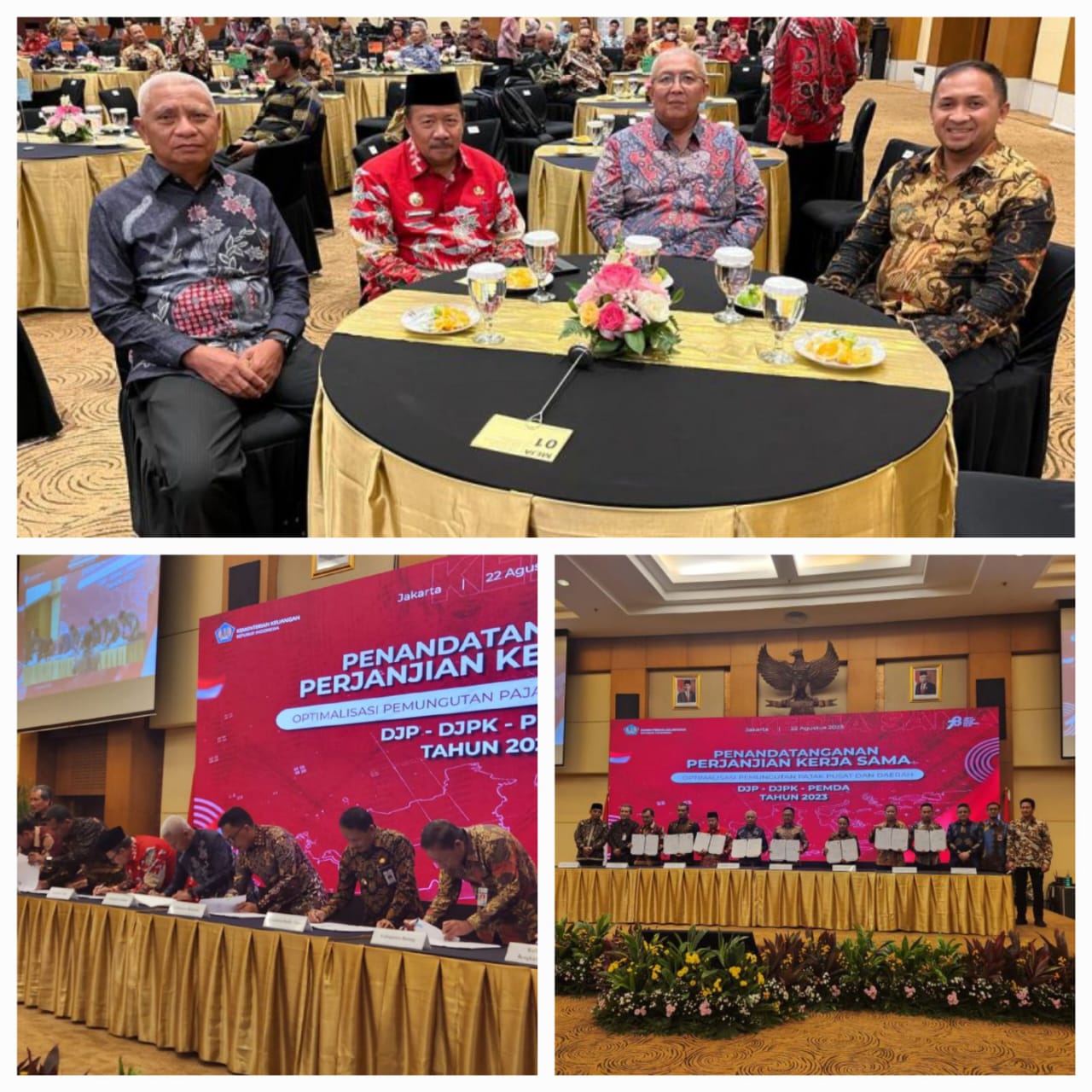 Asahan tintabangsa.com – Bupati Asahan H. Surya, BSc menandatangani Perjanjian Kerja Sama Optimalisasi Pemungutan Pajak Pusat dan Pajak Daerah Antara DJP, DJPK dan Pemerintah Daerah tahun 2023, di Jakarta, Selasa (22/08/2023). Perjanjian kerjasama ini bertujuan untuk mengoptimalkan pelaksanaan pertukaran dan pemanfaatan data dan informasi perpajakan, data perizinan, dan data atau informasi lainnya, mengoptimalkan penyampaian data informasi keuangan daerah, dan mengoptimalkan pengawasan bersama atas kepatuhan wajib pajak.
