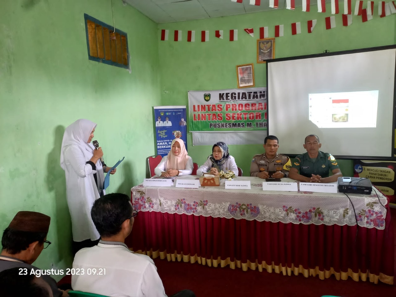 Bengkulu Selatan – Kanit Intelkam dan Bhabinkamtibmas Polsek Kota Manna Polres Bengkulu Selatan Polda Bengkulu, Aipda Candra Ardiansah dan Aipda Istin Parizon, S.H., serta Brigadir A Rozie, S.H., hadiri kegiatan Sosialisasi Lintas Sektor Program Imunisasi Antigen Terbaru di Puskesmas M. Thaha Kelurahan Tanjung Mulia Kecamatan Pasar Manna Kabupaten Bengkulu Selatan , Rabu (23/08/23), Jam 09.00 WIB.
