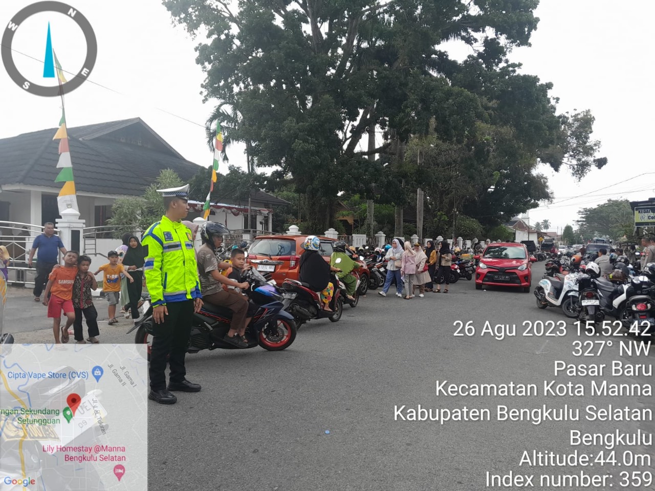 Bengkulu Selatan – Sat Lantas Polres Bengkulu Selatan dan Polsek jajaran Polres Bengkulu Selatan Polda Bengkulu, lakukan pengaman dan pengaturan lalu lintas (Turlalin) lomba Drum Band Tingkat SD, SMP dan SMA kabupaten Bengkulu Selatan, pada hari Sabtu (26/08/23) Siang.