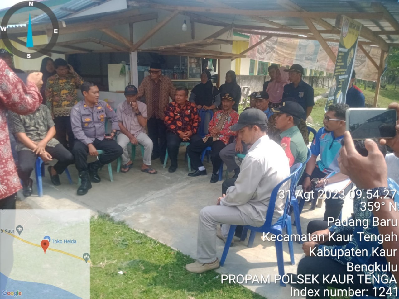 Kaur – Kapolsek Kaur Tengah Iptu Kosseri menghadiri Penentuan titik kordinat Tapal Batas antara Kecamatan Kaur Tengah dan Kecamatan Semidang Gumay, pada hari Kamis, (31/08/2023) sekira pukul 10.00 WIB.