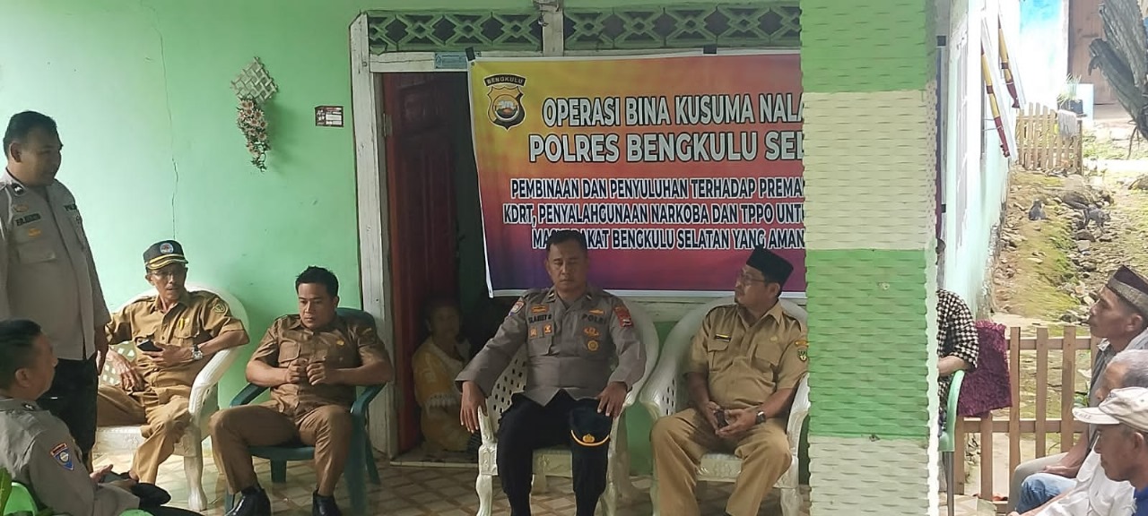 Bengkulu Selatan, – Kasat Binmas Polres Bengkulu Selatan Polda Bengkulu Iptu Kusyadi S.H., M.Si dan personel Ops Bina Kusuma Nala 2023 memberikan Sosialisasi himbauan, pembinaan dan penyuluhan tentang tindak pidana penganiayaan atau Kekerasan Dalam Rumah Tangga didesa Merambung Kecamatan Ulu Manna Kabupaten Bengkulu Selatan, pada Sabtu (02/09/23). Kegiatan Penyuluhan hukum ini merupakan tindak lanjut kegiatan Operasi Bina Kusuma Nala 2023 Polres Bengkulu Selatan dan tersebut diikuti oleh masyarakat yang ada di desa Merambung Kecamatan Ulu Manna Kabupaten Bengkulu Selatan, serta para personel Polres yang terseprin dalam Operasi Bina Kusuma Nala – 2023. Kasat Binmas Polres Bengkulu Selatan Polda Bengkulu Iptu Kusyadi S.H., M.Si., memberikan pemahaman agar terlibat aktif dalam upaya kepolisian dalam pencegahan pencegahan kriminalitas, tawuran, geng motor dan permasalahan gepeng kepada para pelajar di desa Merambung Kecamatan Ulu Manna Kabupaten Bengkulu Selatan. “Alhamdulillah, kegiatan berlangsung dengan sempurna dan penuh keakraba, Selain memberikan pemahaman tentang aturan serta undang-undang yang mengaturnya tentang tindak pidana penganiayaan atau Kekerasan Dalam Rumah Tangga (KDRT) kepada masyarakat di desa Merambung Kecamatan Ulu Manna Kabupaten Bengkulu Selatan,” terangnya. Selain itu Kasat Binmas Iptu Kusyadi SH.Msi dan berharap “kita semua dapat berperan dalam mencegah terjadinya tindak pidana penganiayaan atau Kekerasan Dalam Rumah Tangga kepada masyarakat desa Merambung Kecamatan Ulu Manna Kabupaten Bengkulu Selatan,”pungkasnya.