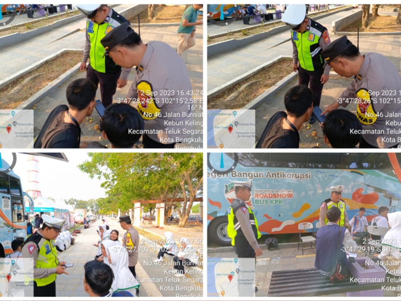 Lebih lanjut Kasi humas menjelaskan dalam kegiatan tersebut personel polresta Bengkulu melaksanakan Turlalin di Lapangan Merdeka lokasi pelaksanaan kegiatan Road Show KPK dan pameran UMKM. Melaksanakan Turlalin di Mess Pemda, Tugu Pers Bengkulu dan Pantai Zakat guna mengurangi kemacetan dan cegah Laka Lantas. Serta Sosialisasi Dikmas Lantas, Aplikasi Polri Super App dan Medsos Polresta Bengkulu.