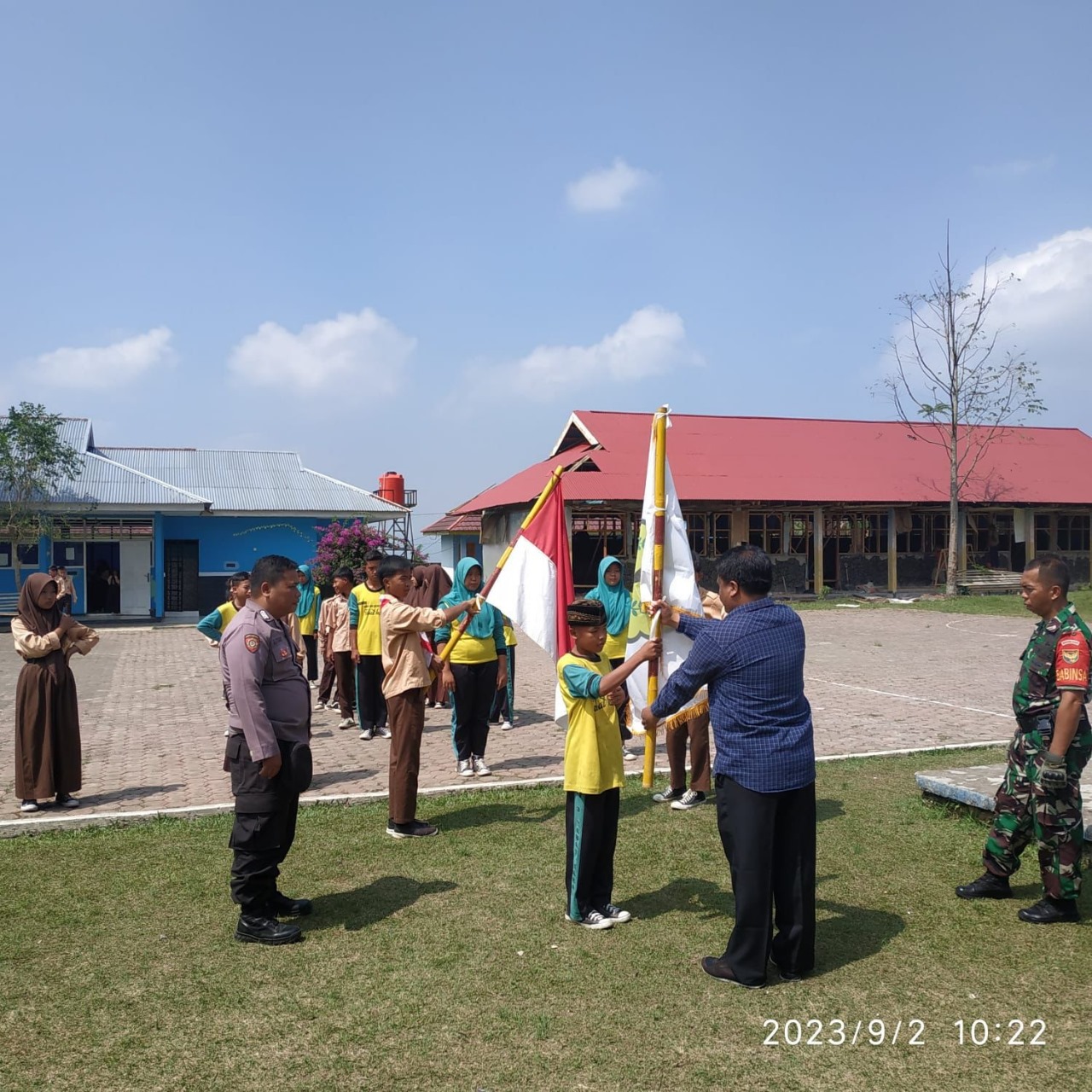 Kepahiang – Dalam rangka persiapan memperingati serah terima Osis dan Upacara Bendera, Babinsa bersama Bhabinkamtibmas Polsek Tebat Karai Polres Kepahiang Polda Bengkulu, melaksanakan pembinaan dan pelatihan kepada siswa dan siswi SMPN 3 Tebat Karai, hari ini Sabtu (02/09/2023).