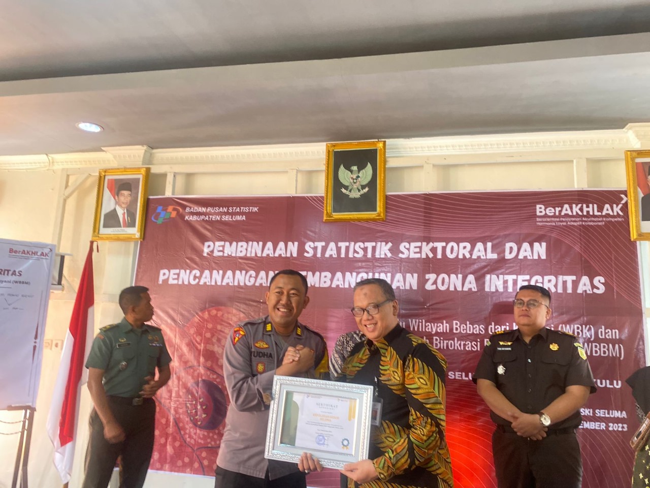 Seluma – Kabag Ops Polres Seluma Polda Bengkulu AKP Yuda Setiawan mewakili Kapolres Seluma menghadiri kegiatan pembinaan statistik sektoral dan perencanaan pembangunan Zona Integritas menuju WBK dan WBBM BPS Kabupaten Seluma, di Hotel Rizki Kelurahan Pasar Tais, Kamis (07/09/2023) pagi.