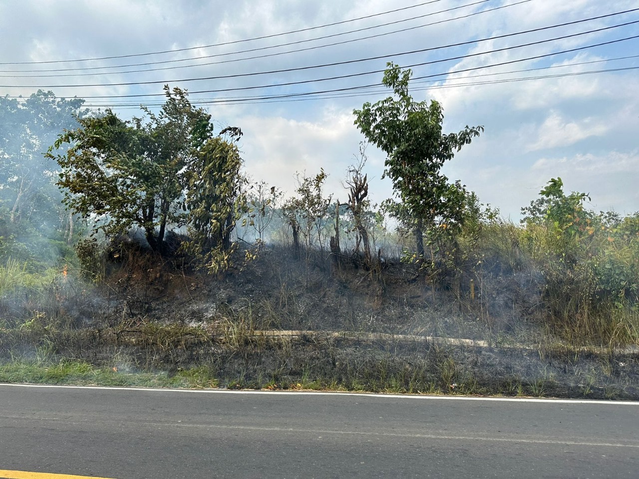 Diduga api tersebut berasal dari orang tidak dikenal (OTK) yang sengaja menghidupkan api di bahu jalan.