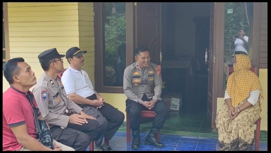 Pada kunjungannya Kapolsek Padang Jaya di dampingi anggota dan kades Sido Mukti serta perangkat Desa yang di terima oleh istri Peltu (Purn) Warseno berhubung yang bersangkutan sedang berobat karena sedang sakit.