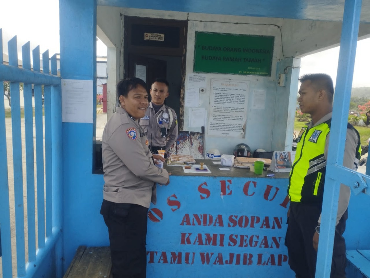 Sambang Kamtibmas sekaligus siarkan pesan-pesan kamtibmas tentang Antisipasi masuknya orang yang tidak dikenal yang mungkin akan melakukan tindakan kriminal di PT. SBS Desa Nanjungan bersama Bhabinkamtibmas Aipda Marzon Advawi kepada Satuan Pengamanan (Satpam) PT. SBS di Desa Nanjungan Kecamatan Pino Raya.