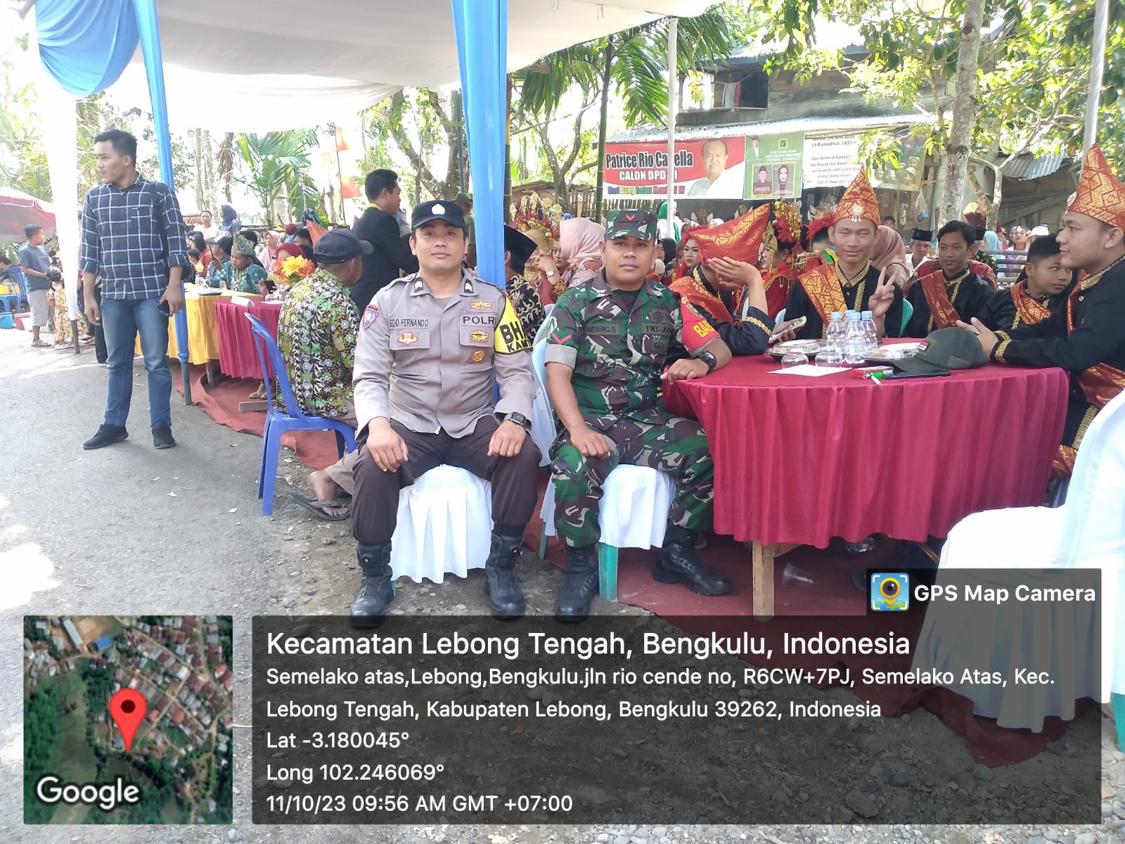 Lebong – Bhabinkamtibmas Polsek Lebong Tengah Polres Lebong Polda Bengkulu, Briptu Edo Fernando, menghadiri kegiatan Ritual Adat Kedurai Muang Apem 2023 di Desa Semelako Atas Kecamatan Lebong Tengah, Kabupaten Lebong, Rabu (11/10/2023) siang.