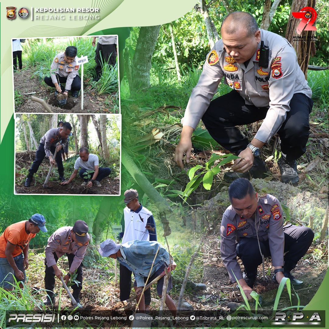 Rejang Lebong – Dalam rangka memperingati Hari Ulang Tahun (HUT) ke-72 Humas Polri, Polres Rejang lebong Polda Bengkulu, melakukan kegiatan penghijauan penanaman pohon di wilyah Kelurahan Talang Benih Kabupaten Rejang Lebong, Jumat (13/10/2023).