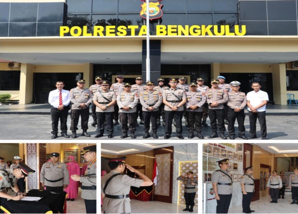 Bengkulu – Polresta Bengkulu Polda Bengkulu pada Jumat (13/10/2023) siang, bertempat di Lobi Polresta Bengkulu, melaksanakan upacara penyerahan jabatan Kasat Reskrim dan Kasat Lantas.