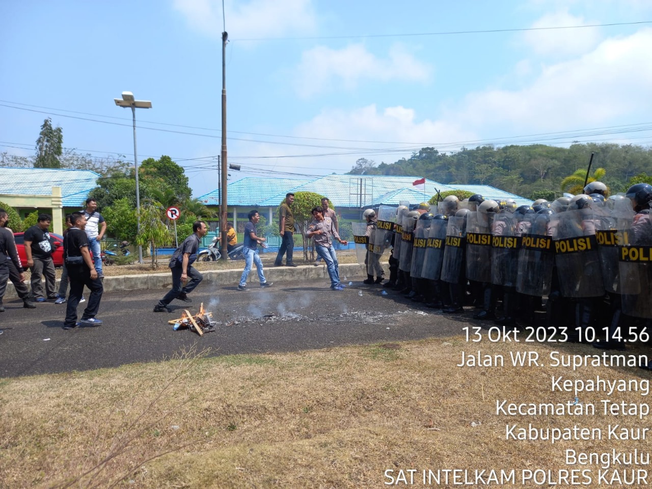 Kaur – Polres Kaur Polda Bengkulu, menggelar simulasi Sistem Pengamanan Kota (Sispamkota) dalam rangka kesiapan pengamanan Pemilu 2024, di Sekretariat KPUD Kaur, Jumat (13/10/2023).