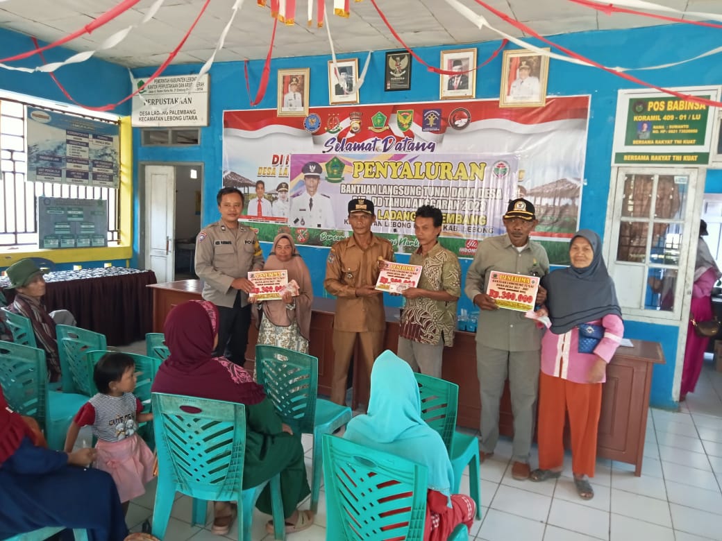 Bhabinkamtibmas Polsek Lebong Utara Hadiri Penyaluran BLT DD di Desa Ladang Palembang