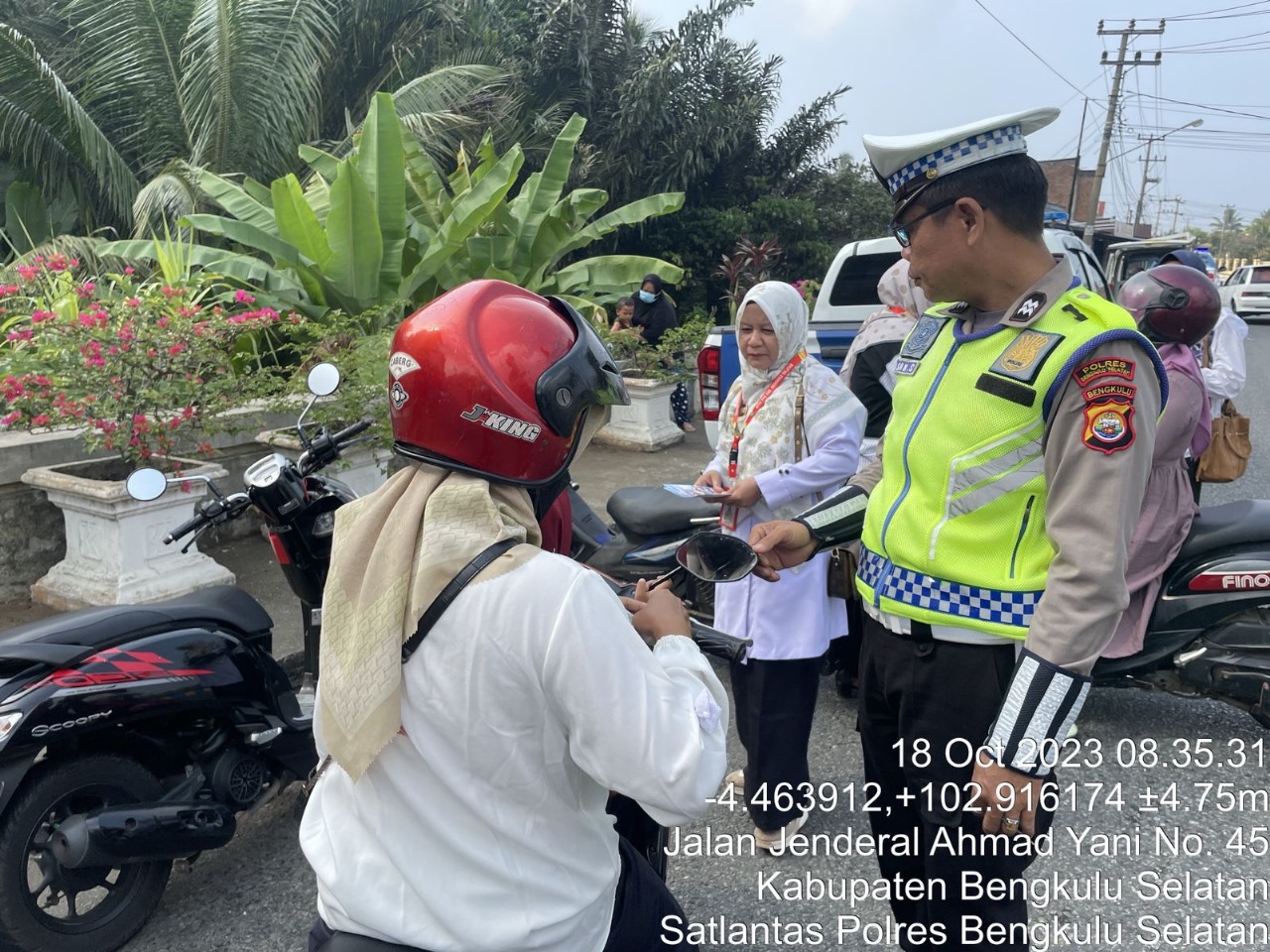 Kegiatan tersebut dipimpin langsung oleh Kasat Lantas AKP B.Sinaga, S.Sos., dan anggotanya, turut hadir dilokasi Kepala UPTD Emon Ullah dan Putra Jasa Raharja perwakilan Bengkulu Selatan.