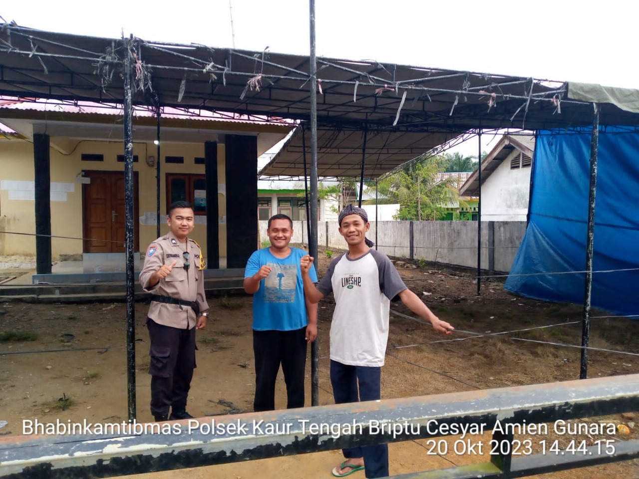 Kaur – Bhabinkamtibmas Polsek Kaur Tengah Polres Kaur Polda Bengkulu, Pada hari Jumat, (20/10/2023) Pukul 14.45 WIB melaksanakan pengecekan lokasi dan pembuatan TPS dalam rangka pilkades serentak tahun 2023 Kab Kaur di Desa Serdang Indah kecamatan Luas Kabupaten Kaur pada hari Minggu tanggal 22 Oktober 2023.