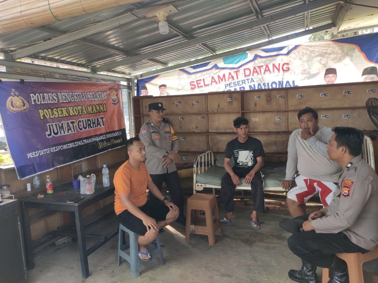 Bengkulu Selatan – Polsek Kota Manna Polres Bengkulu Selatan Polda Bengkulu melaksanakan Jumat Curhat, di Kelurahan Pasar Baru Kecamatan Kota Manna Kabupaten Bengkulu Selatan, Jumat (20/10/23).