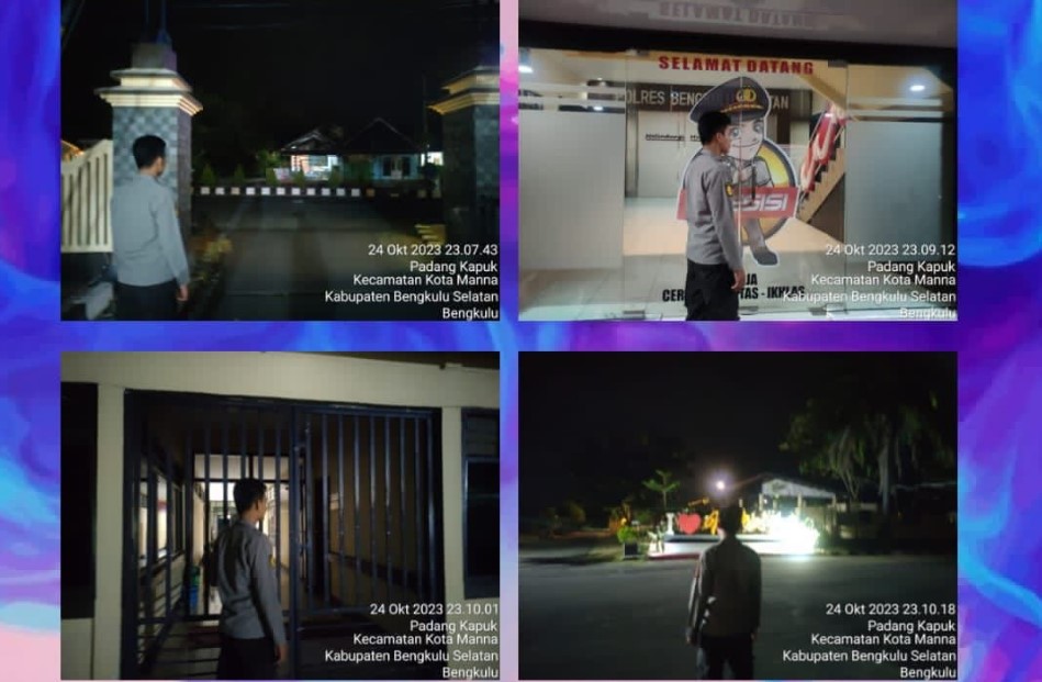 Jaga Keamanan Mako Anggota Piket SPKT Patroli Berkala di Mako Polres Bengkulu Selatan.