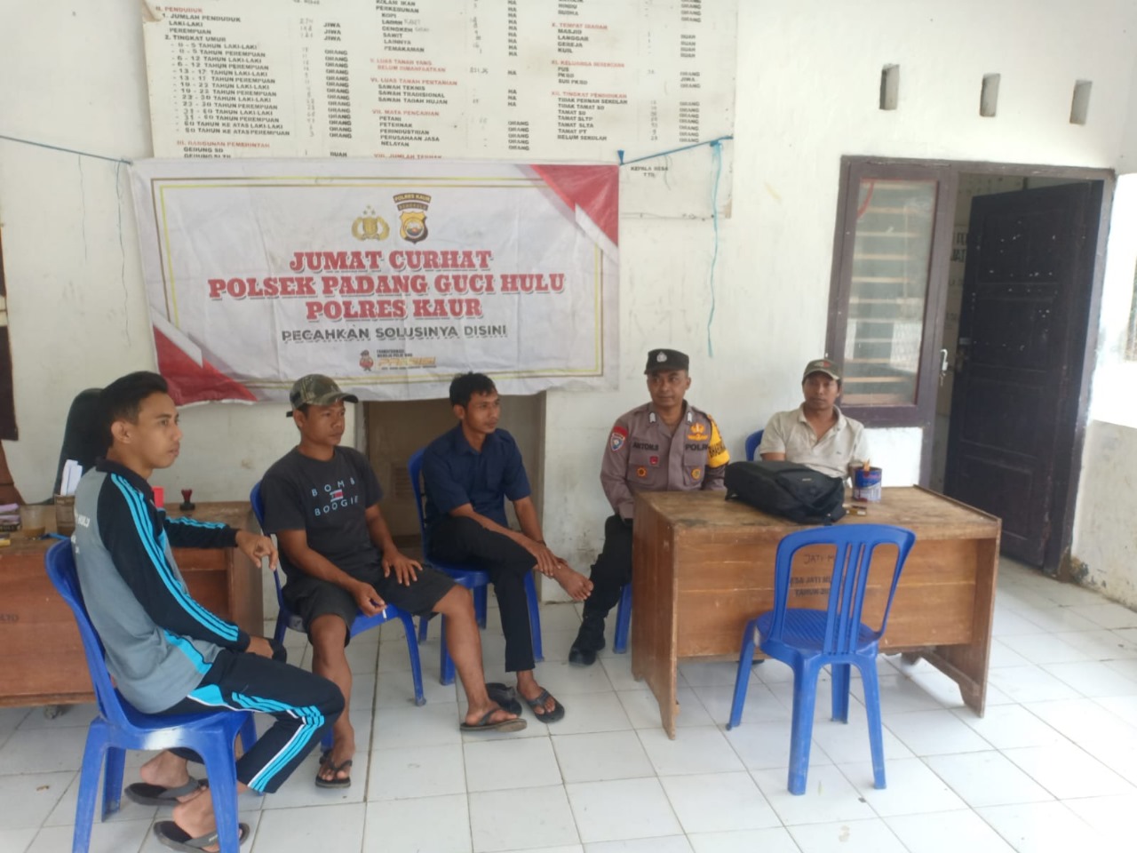 Kaur – Polsek Padang Guci Hulu Polres Kaur Polda Bengkulu, melaksanakan kegiatan Jumat Curhat di Desa Jati Mulyo Kecamatan Padang Guci Hulu Kabupaten Kaur, Jumat (27/10/2023).
