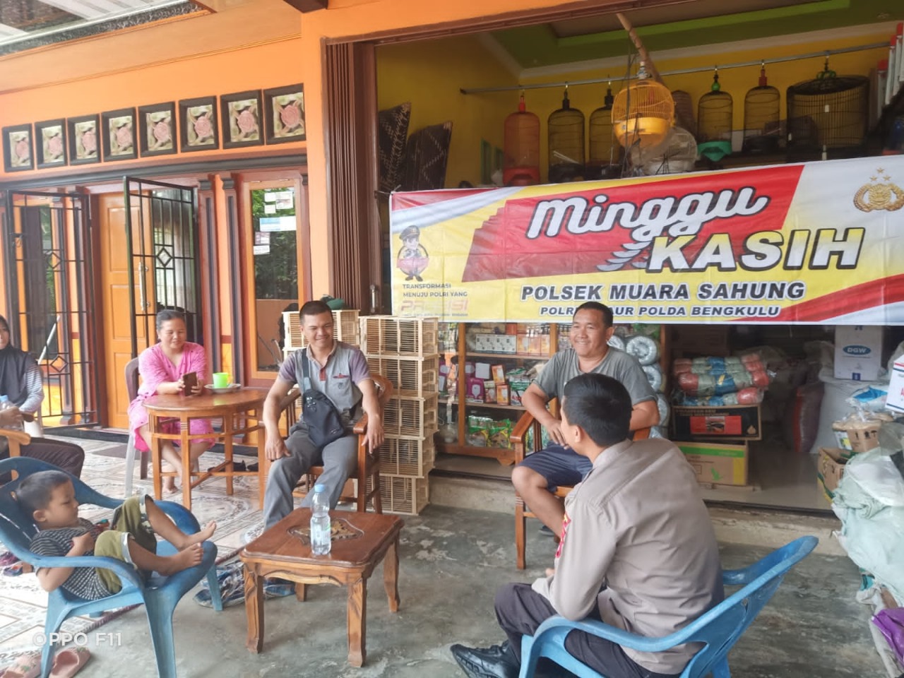 Kaur – Polsek Muara Sahung Polres Kaur Polda Bengkulu menggelar Minggu Kasih, Jalinan komunikasi bersama masyarakat ini bertujuan menjaring aspirasi serta masukan maupun saran.