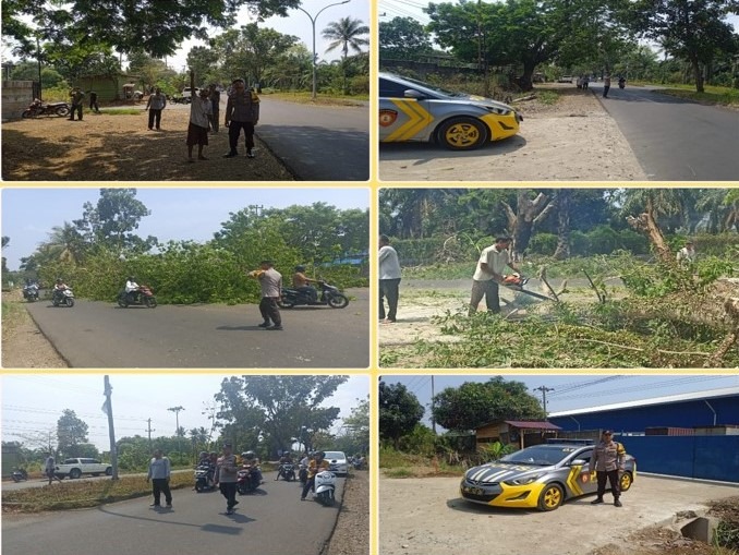 Personel Polsek Gading Cepaka Lakukan Pengamanan Penebangan Pohon di Jalan Citandui