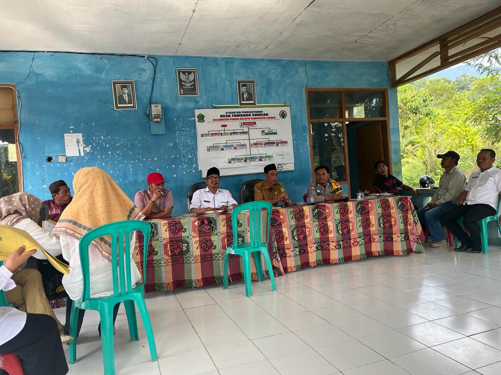 Lebong – Bhabinkamtibmas Polsek Lebong Utara Polres Lebong Polda Bengkulu, Bripka Afrodi B, menghadiri kegiatan monitoring dan evaluasi (Monev) pembangunan desa di Desa Tambang Sawah Kecamatan Pinang Belapis, Kabupaten Lebong, Selasa (31/10/2023).