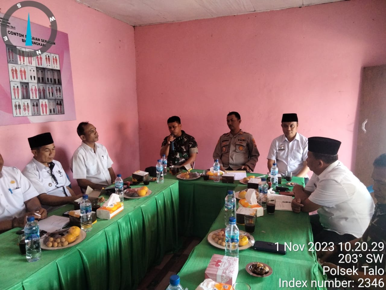 Seluma – Pada Hari Rabu (1/11/2023) bertempat diruang Bhayangkari Polsek Talo, Kapolsek Talo Iptu M.Haryanto, S.Sos., pimpin pelaksanaan Rapat kordinasi kesepakatan bersama Forkopimcam Sekecamatan Talo tentang pelaksanaan hiburan keramaian oleh masyarakat dan pelaku usaha sewa alat musik organ tunggal, orkes dan hiburan lainya.
