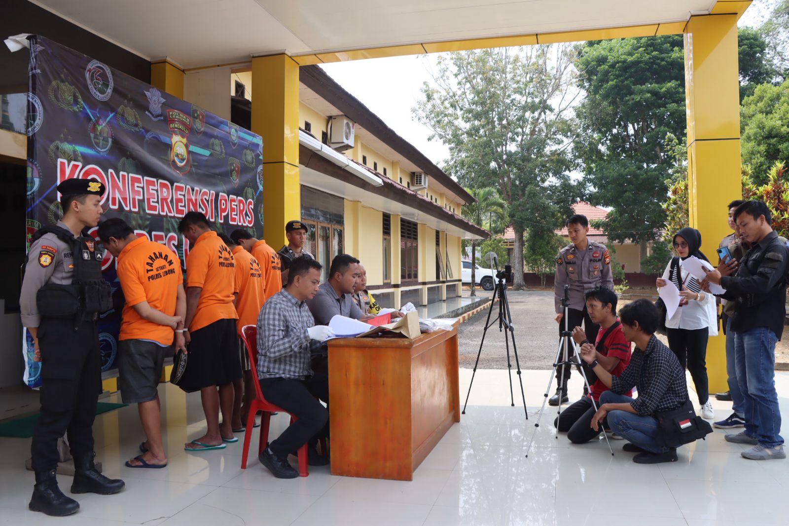 Lebong – Terlibat dalam tindak pidana pencurian dengan pemberatan (Curat), seorang pria berinisial Ri (32) warga Desa Ujung Tanjung II Kecamatan Lebong Sakti, Kabupaten Lebong, terancam pidana penjara maksimal 9 tahun. Hal itu disampikan Kapolres Lebong Polda Bengkulu AKBP Awilzan, melalui Kabag Ops AKP Wiwid Hartono disampaikan Kasat Reskrim Polres Lebong Iptu Riski Dwi Cahyo, S.Trk, S.I.K., saat press release di Mapolres Lebong, Rabu (1/11/2023). Adapun, peristiwa Curat terjadi pada Jumat (10/6/2023) lalu di TKP Desa Ujung Tanjung II Kecamatan Lebong Sakti Kabupaten Lebong. “Tersangka melakukan aksi Curat di kediaman korban Vina, dengan mengambil 1 unit Hp milik korban. Setelah itu, Hp tersebut dijual. Tersangka kemudian berhasil kita tangkap pada Rabu (27/9/2023) dan kita lakukan tindakan tegas terukur terhadap tersangka,” jelas Kasat.